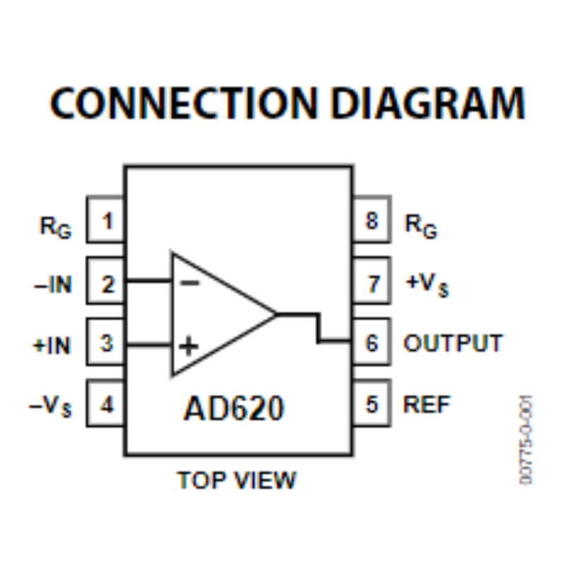 El AD620 es un amplificador de instrumentación de alta precisión diseñado para aplicaciones que requieren mediciones precisas de señales pequeñas. Este dispositivo es ideal para amplificar diferencias de voltaje muy pequeñas y eliminar el ruido común en aplicaciones donde la precisión es crucial, como en instrumentación médica, sensores de precisión y sistemas de adquisición de datos.