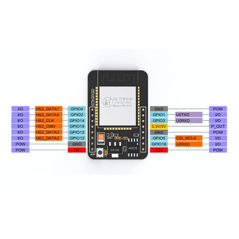 El ESP32-CAM típicamente tiene pines para: